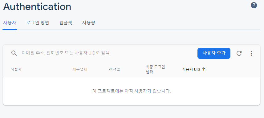 등록이 완료되면 파이어베이스 Authentication에 등록이 된다.