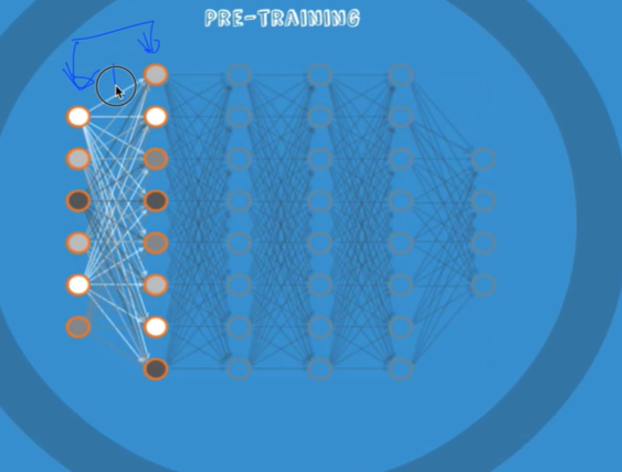 layer가 많을때 두개의 layer만 보고 인코더와 디코더의 반복을 통해 weigth를 찾아낸다. 그래고 그다음 두개로 가서 똑같은 과정을 반복하고 이 과정은 마지막 layer까지 진행한다.