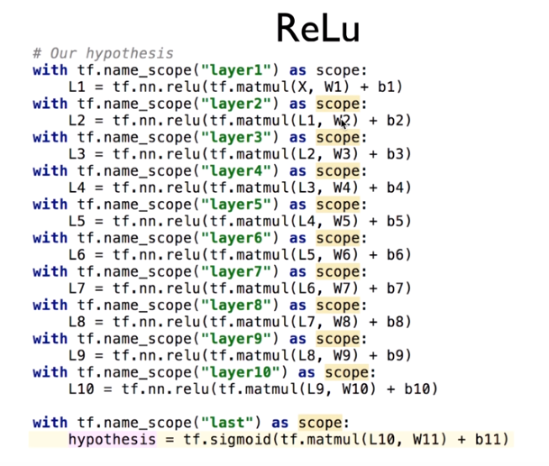 이제는 sigmoid대신에 relu라는 함수를 사용하면 된다.