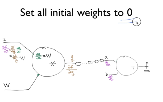 우리는 이전에 초기화를 할때면 랜덤을 사용하였다. 하지만 만약 우리가 초기값을 0으로 주었다 생각해보자. 하지만 0은 미분했을 때 0이 되어서 기울기가 사라져버린다. 이를 방지하기 위해서 weight의 초기화를 잘 주는 것이 중요하다.