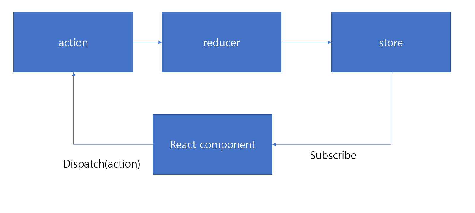 reducer : 이전에 값이 action의 설명을 통해 nextState로 바뀌었음을 return으로 알려준다.